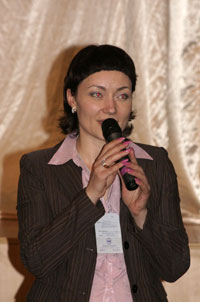 Г-жа Сохина сделала доклад "Культурные мероприятия и их влияние на имидж города", в ходе которого продемонстрировала прямую взаимосвязь уровня культуры горожан и числа культурных мероприятий, которые проходят в городе.